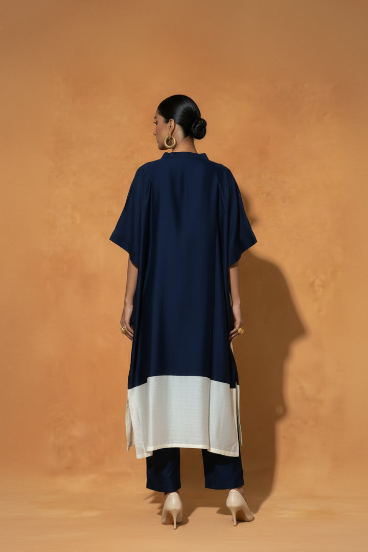 - Colour-blocked Kaftan with a pleated V-neck